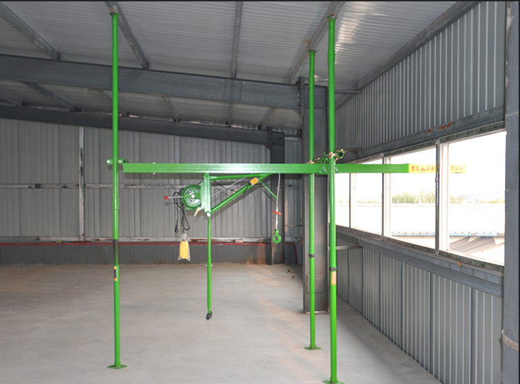 第一種:如果在室內進行起吊的話,可以選擇室內吊機,室內吊機一般要求窗口比較小,需要直滑式吊機,可以選擇三立柱或者四立柱的,吊機的開頭的地方是平行于地面的一根橫柱,特別適合在高層建筑的小窗口進行起吊工作。最大可以起吊1噸的重量。
